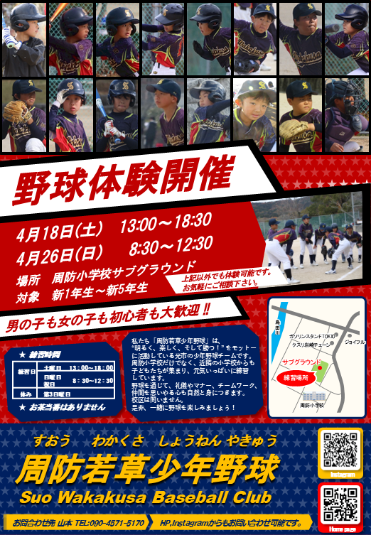 周防小学校となりのサブグラウンドで活動しています!